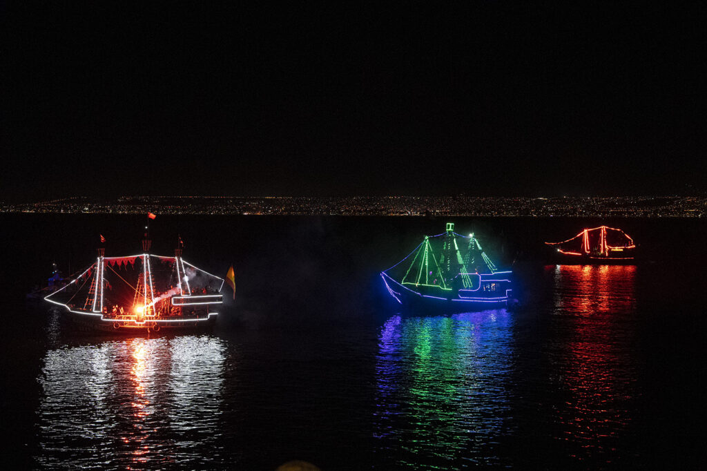 La noche avanzó entre relatos, recreaciones, enseñanzas de jerga pirata y la llegada de embarcaciones piratas turísticas que escoltaron el asalto al fuerte. Bengalas iluminaron el cielo, las espadas chocaron y la Hermandad defendió el enclave en una intensa pelea que mantuvo al público atento, como si estuviera presenciando una escena de cine.